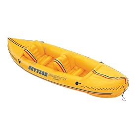 Rugged enough to traverse the entire length of the Amazon river twice, Sevylor's classic Tahiti K79 two-person inflatable canoe comes in bright yellow. Produced since 1963, it features an I-beam floor for extra buoyancy, drain hole with plug, Boston valves, bow and stern spray decks, and specially designed inflatable seats with back support.
