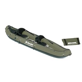Suited for paddling on rivers, lakes and streams, the two-person Sevylor Colorado inflatable canoe (model KCC335HF in blue) features a design that's as close to a traditional North American Indian canoe as an inflatable boat will ever get. Its double hull construction makes it very rugged and rigid, and it offers the stability, maneuverability and sea worthiness normally found in a kayak. It can be paddled with either canoe or kayak paddles and is compatible with an optional motor mount (for attaching a Sevylor SBM 12V trolling motor). It comes with two 2 removable seats, repair kit, and nylon carry bag.